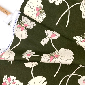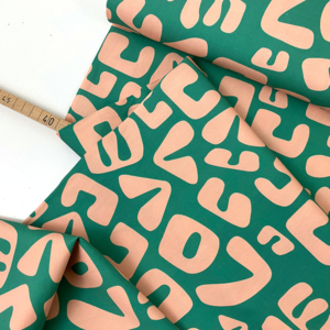 Woven Cotton Popeline Abstract Love, Green Nude