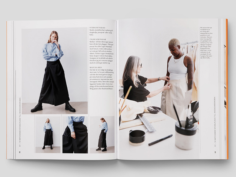 ENG: Sew the latest fashion! In this book from 2024, Ann Ringstrand, one of the most successful fashion designers in Sweden, shares 10 matching key styles for you to sew for yourself. Step by step, she guides you through the creation of a mini collection of your own, consisting of a coat, jacket, blazer, waistcoat, dress, skirt, two trousers, and two shirts. The designs are characterised by Scandinavian minimalism and a fusion of tailoring and workwear – a style that has become Ann Ringstrand’s signature since she founded her internationally renowned clothing brand, Hope. The book comes with 10 full-scale pattern sheets and illustrated sewing instructions for sizes XS-2XL, EU women’s sizes 32-54. There are creative sewing tips covering materials, personalised details, and inspiring ideas for creating new fashion out of reused garments.