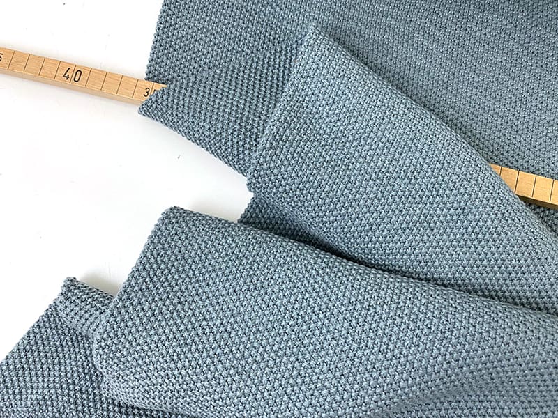 Der Stoff fällt geschmeidig und hat eine sehr schöne Struktur. Er eignet sich hervorragend für Bekleidung wie Sweater, Cardigans, Pullunder, Hoodies, Shirts, Schals, etc..