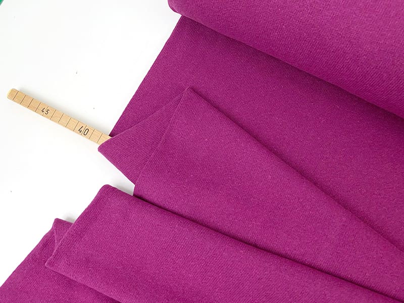Der Farbton ist ein schönes, leuchtendes Dunkelpink, Heidepink oder dunkles Magenta aus der aktuellen Farbkollektion HW 2024/2025. Die Farbe ist ganz leicht meliert, aber wirklich sehr dezent. Das hat den großen Vorteil, dass der Farbton deutlich anpassungsfähiger und damit besser kombinierbar ist.
