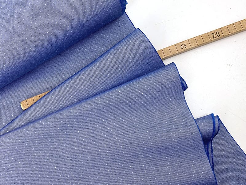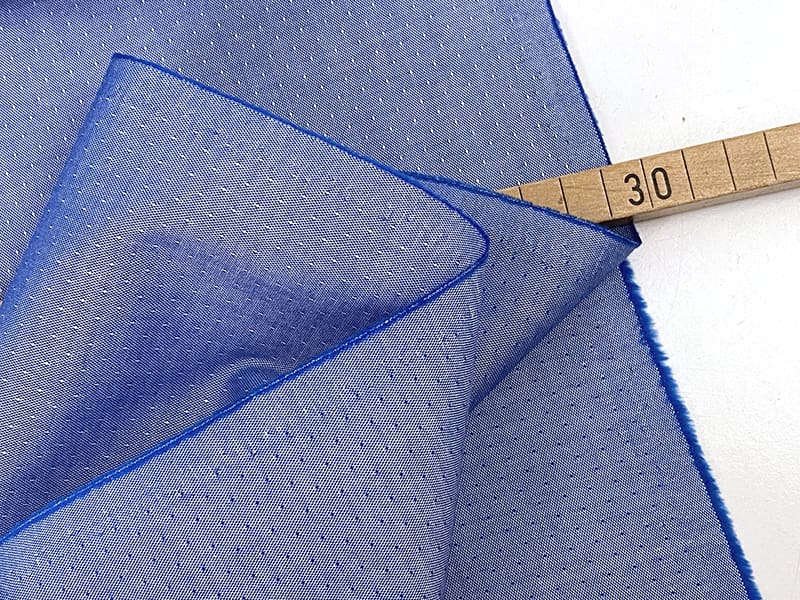Zarte Popeline mit sehr feiner Webung und eingewebter Ton in Ton Pünktchenstruktur. Das Muster / die Struktur ist ganz dezent und in Kombination mit der glatten Oberfläche des Gewebes sehr elegant. Der Stoff kann beidseitig eingesetzt werden, auf der anderen Seite sind die Pünktchen blau.