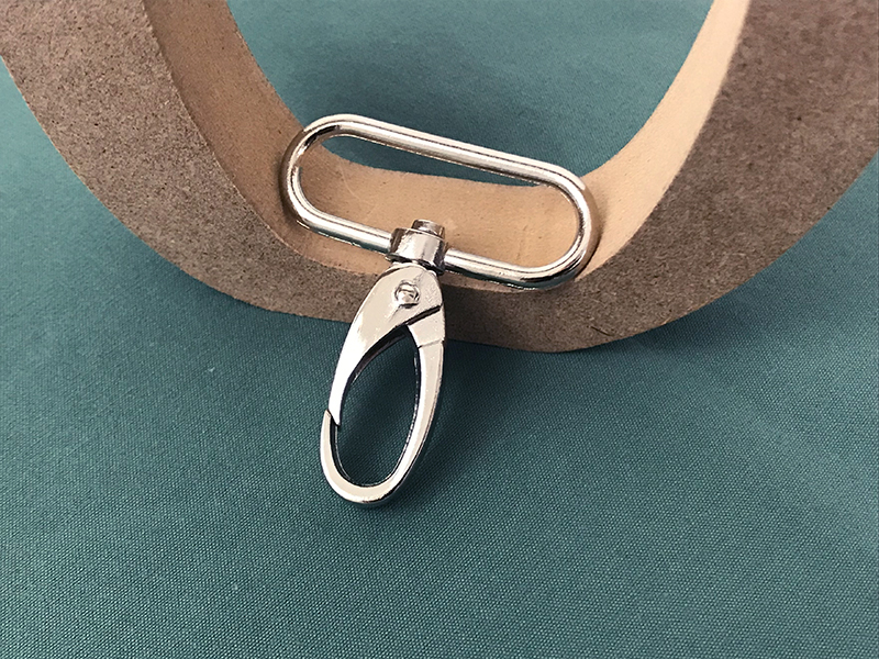 Stabiler Karabiner für Taschen, Rucksäcke und andere Accessoires. Als Gegenstück dazu passen die entsprechenden D-Ringe, Schieber und für die Befestigung z. B. an Lederriemen empfehlen wir auch die silbernen Nieten von Merchant and Mills.