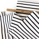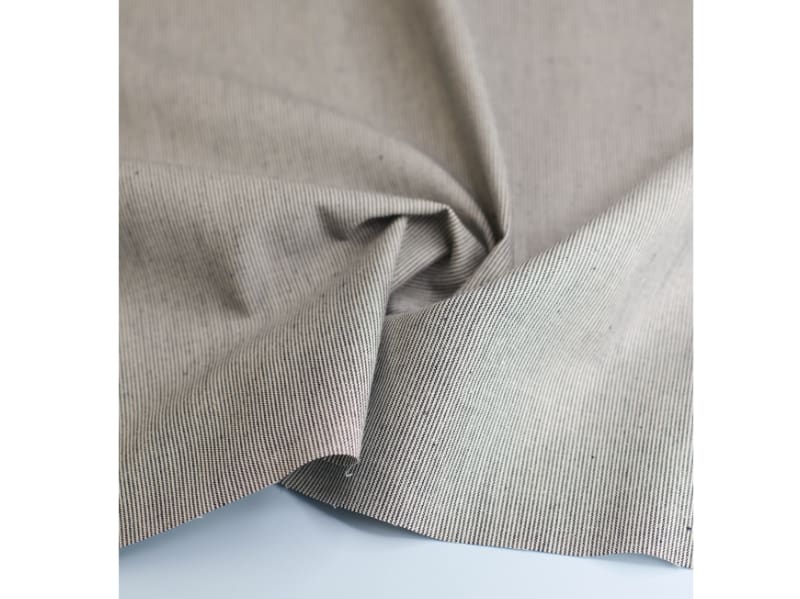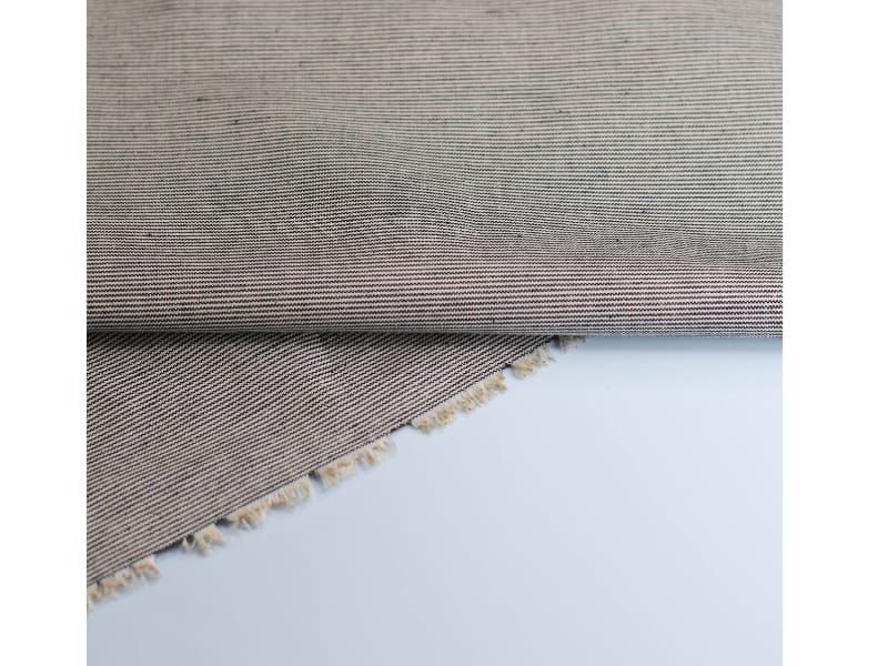 Leichter Denim Chambray mit sehr feinen, eingewebten Streifen. Die Streifenbreite beträgt nur 1mm, so dass der Stoff aus der Distanz betrachtet eher wie ein einfarbiger Stoff mit dezenter Struktur wahrgenommen wird. Erst aus der Nähe sind die Streifen sichtbar. Die Streifen sind navy, wirken jedoch durch die Kombination mit der umgebleichten Baumwolle eher anthrazit. Insgesamt ein sehr lässiges Material. Dieser Stoff kann beidseitig verwendet werden.