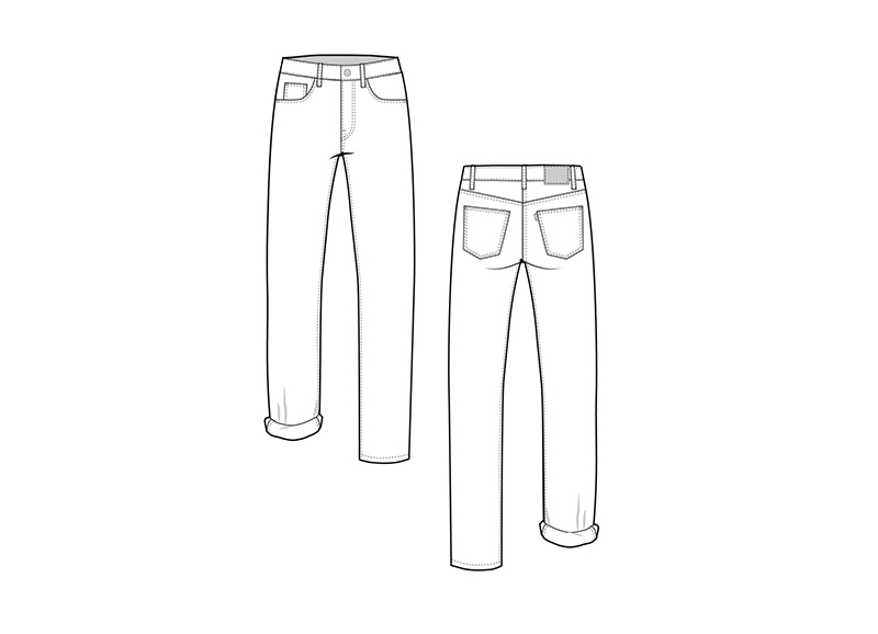 Slim cut & mid rise. Klassische 5 pocket Jeans, konzipiert für nicht dehnbare Jeansstoffe. Das Schnittmuster umfasst eine kürzere (cropped) und eine normale Länge.