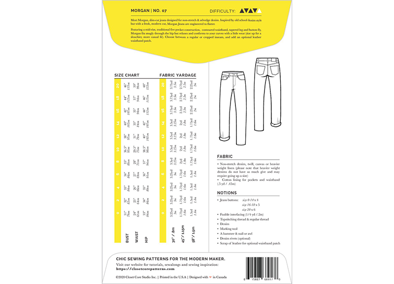 Morgan Boyfriend Jeans, Closet Core Patterns, Papierschnittmuster