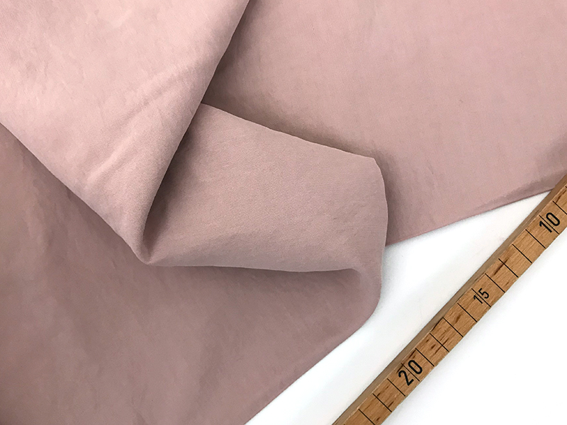Dieser Viskose Webstoff hat einen ganz besonderen Touch durch das Stone washed Verfahren. Die Oberfläche ist matt und der Stoff wirkt wie luftgetrocknet. Die Farbe ist gleichmäßig, nicht verwaschen, wirkt aber ganz samtig und leicht verknittert (auch nach dem Waschen ist kaum Bügeln erforderlich).