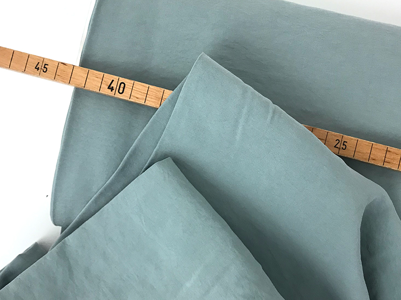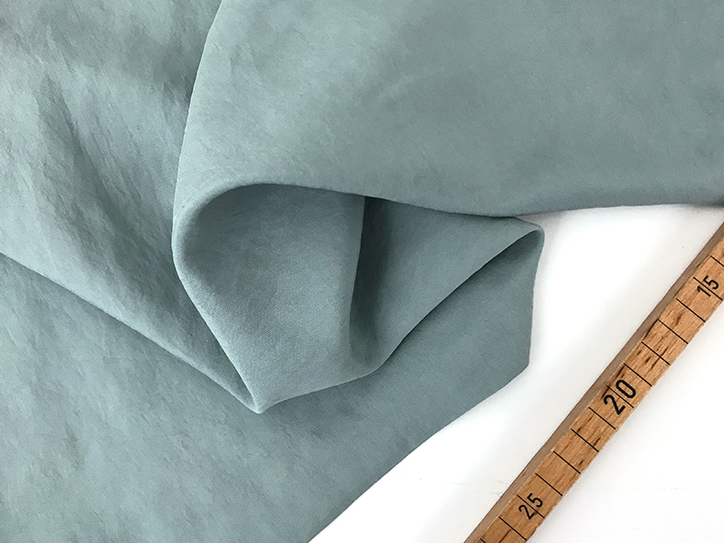 Dieser Viskose Webstoff hat einen ganz besonderen Touch durch das Stone washed Verfahren. Die Oberfläche ist matt und der Stoff wirkt wie luftgetrocknet. Die Farbe ist gleichmäßig, nicht verwaschen, wirkt aber ganz samtig und leicht verknittert (auch nach dem Waschen ist kaum Bügeln erforderlich).