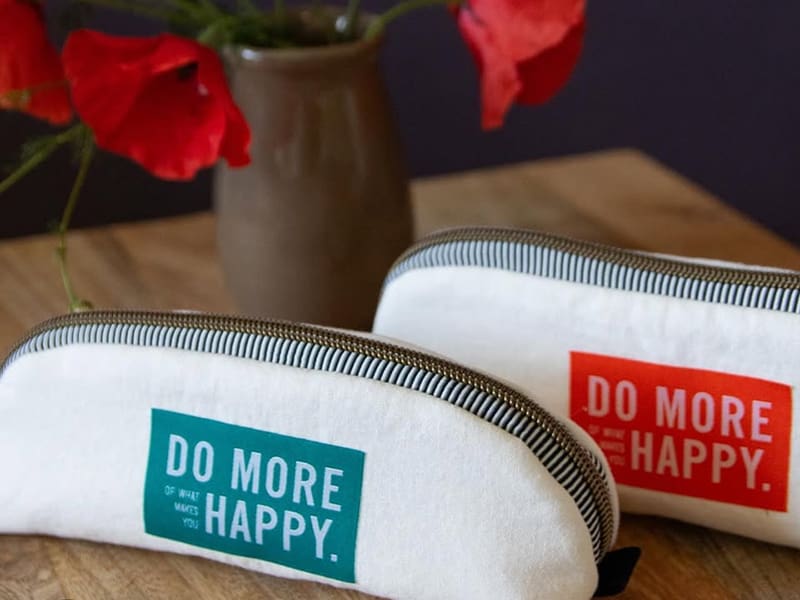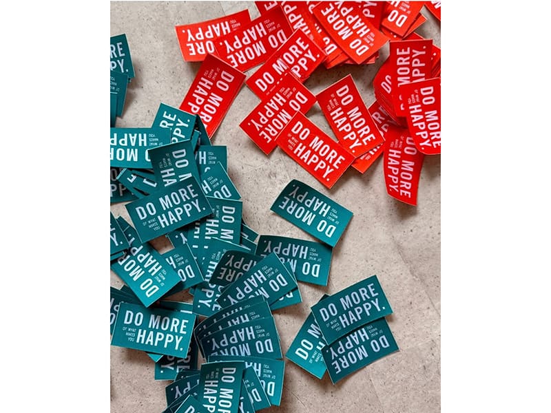 Do more of what makes you happy – Patches in orange/weiß und petrol/weiß