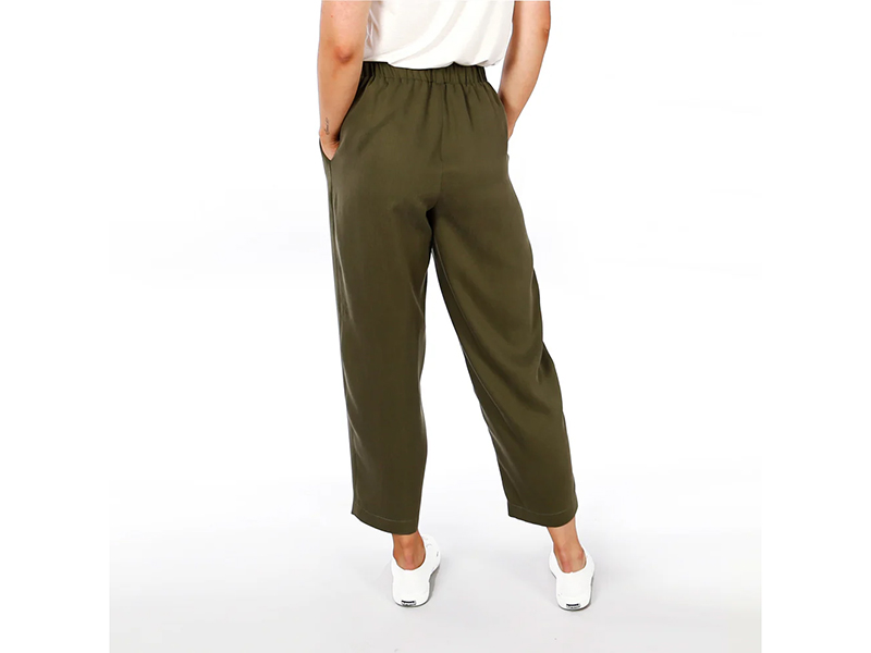 Frau Gusta ist eine locker und luftig fallende Hose im egg-shape. Zwei Bundfalten erzeugen zusätzliche Weite, die zum Saum hin schmaler wird. Der Gummibund liegt im Vorderteil glatt an und kräuselt sich erst ab den abgerundeten Tascheneingriffen. Mit FRAU GUSTA hast du eine  moderne und doch bequeme Hose, die dich überall hin begleiten wird.