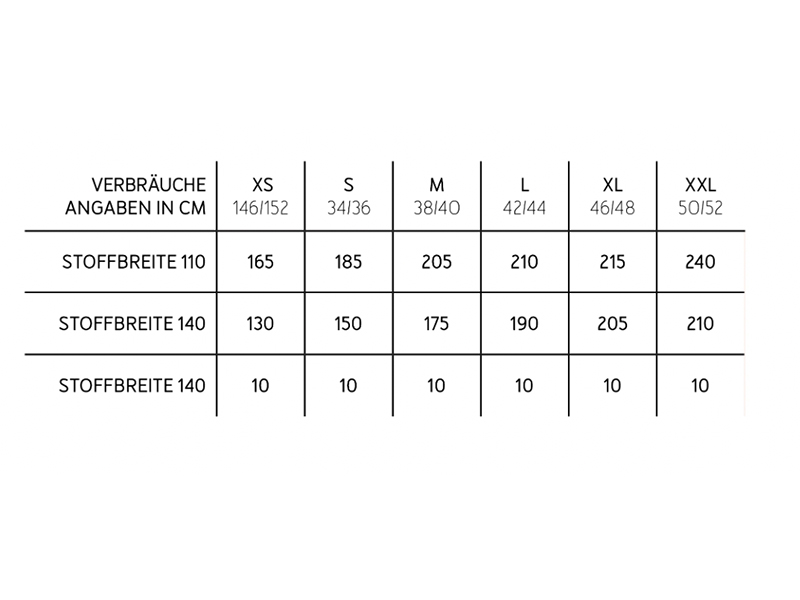 • Materialempfehlung: weich fallende Webware wie z.B. Viskose, Tencel, Leinen oder lockere Baumwolle