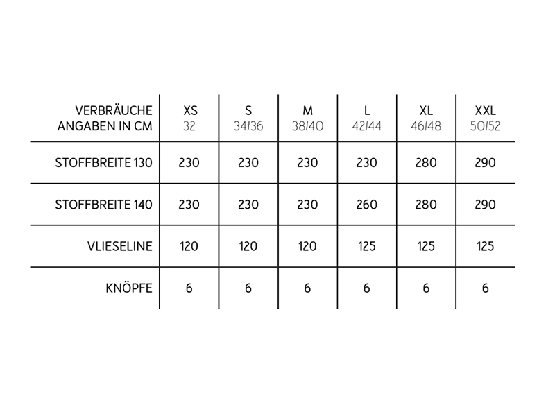 - Materialempfehlung: weich fallende Webware wie z.B. Viskose, Viskoseleinen, Musselin oder Tencel.