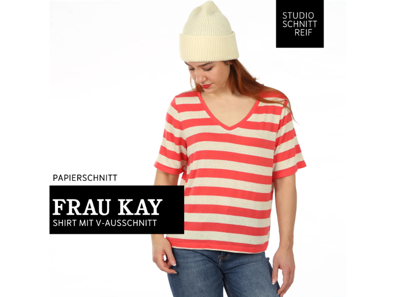 Schnittmuster Frau Kay, unkompliziertes Shirt mit V-Ausschnitt
