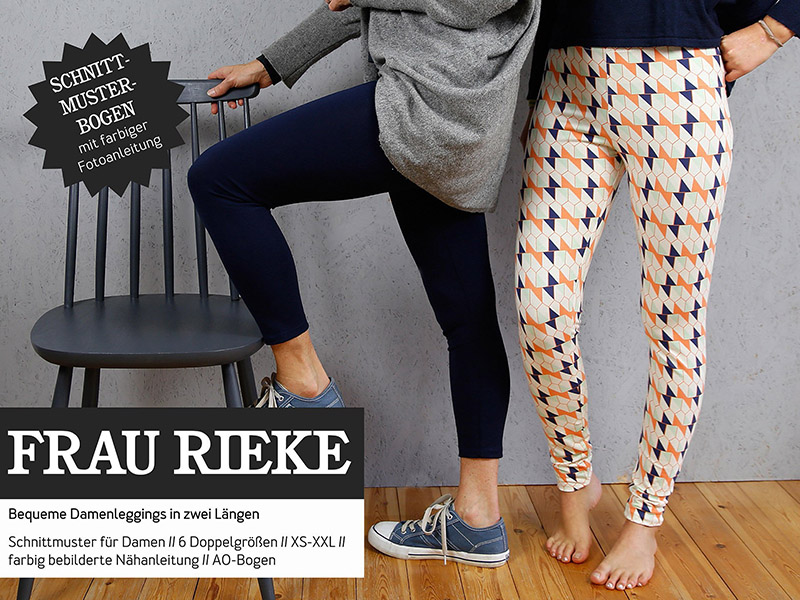 Diese Leggings ist so schnell genäht, dass Du nie wieder den Weg ins Kaufhaus auf Dich nehmen willst. Zudem ist FRAU RIEKE superbequem und für jede Gelegenheit zu haben! Als Schlafanzughose, als Sporthose, als Basicteil unterm Kleid und sogar als Teil einer Faschingsverkleidung hat FRAU RIEKE bereits Einzug in unsere Kleiderschränke gefunden. Wir sind uns sicher, dir fällt dazu auch noch etwas ein. Durch gemusterte Stoffe kannst Du FRAU RIEKE deinen persönlichen Look geben; einfarbig passt sie sich jedem Stil an.