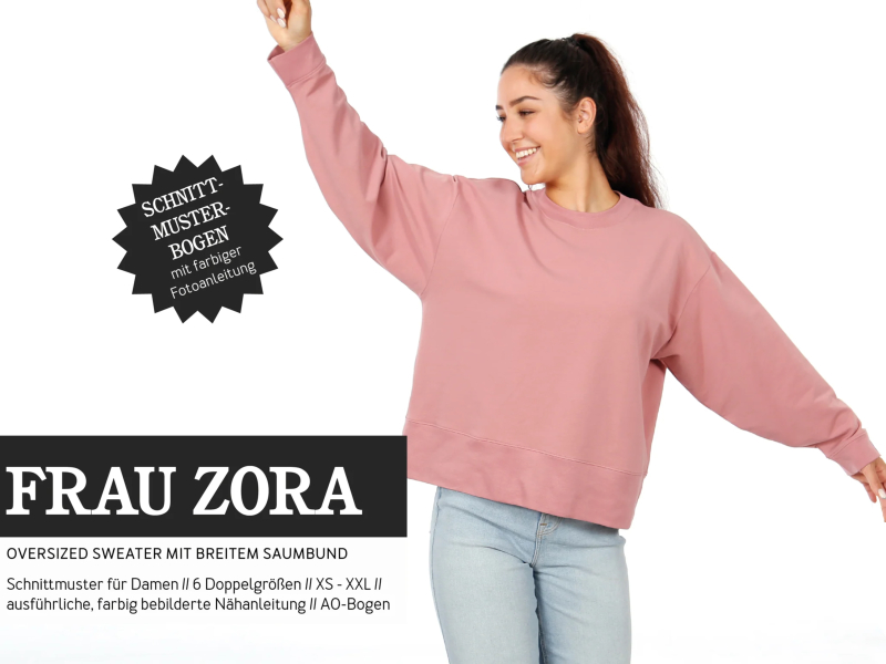 Schnittmuster Frau Zora, Oversized Sweater mit breitem Saumbund, studioschnittreif