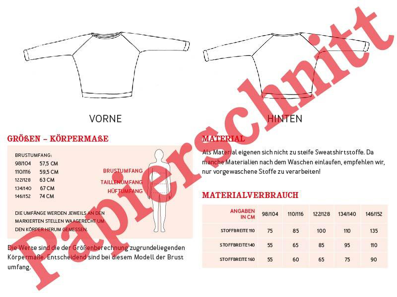 • Materialempfehlung: nicht zu steife Sweatshirtstoffe