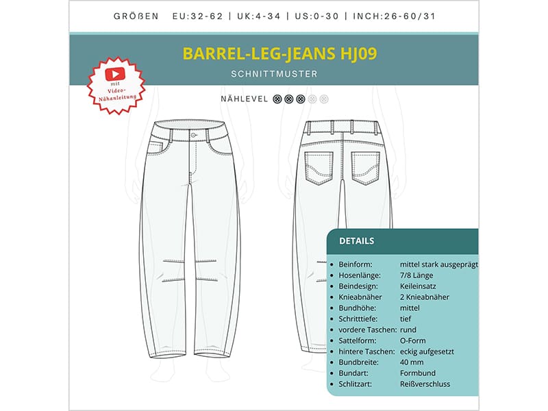 Smart Pattern „Barrel Leg Jeans HJ09“, Papierschnittmuster
