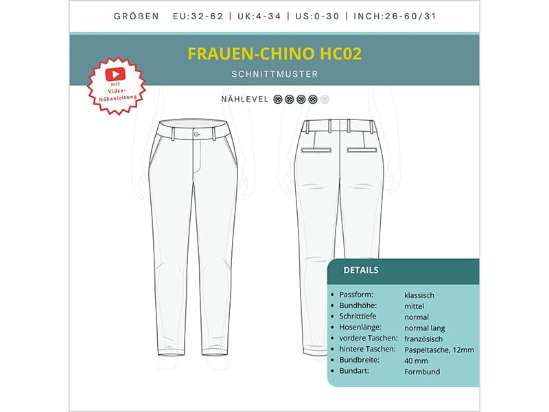 Smart Pattern „Frauen Chino HC02“, Papierschnittmuster